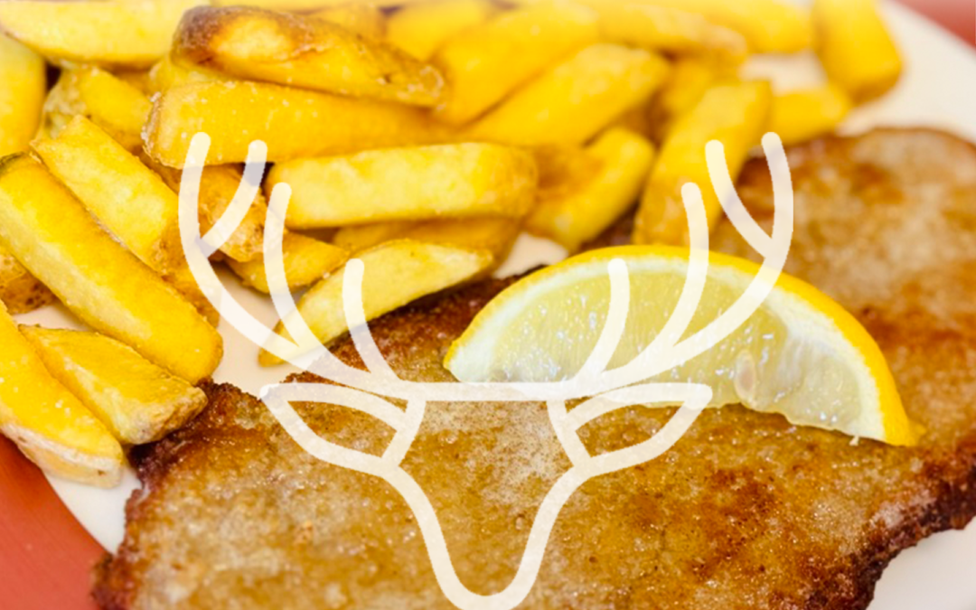 Schnitzel vom glücklichen Schwein von der Metzgerei Müller frisch im Haus zubereitet. In hausgemachten Semmelbrösel und frischem BIO paniert und mit Oma’s Pommes serviert.