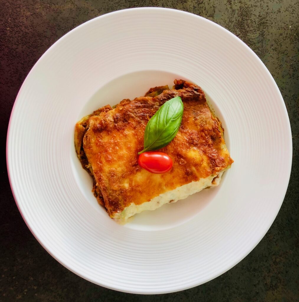Lasagne verdi fatte in casa con ripieno di manzo alla bolognese