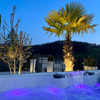 The infinity whirlpool on the roof terrace with a fantastically beautiful far-reaching view over the moated castle, the Jura mountains and the Habsburg invites you all year round to enjoy a wonderful time with plenty of privacy at a comfortably warm 37°C water temperature in the perfect lifestyle® Design Boutique & Private SPA.